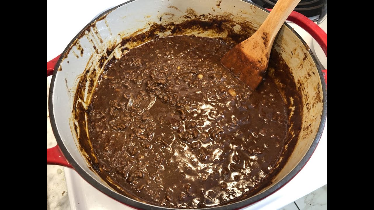 A lot of the necessary prep for this dish suggests it was made especially for restaurants, or at least made popular by restaurants, including the way the final step of preparing the chili is to add your raw ground beef to the chili base. The traditional way of cooking this is to put your ingredients together, add the ground beef, and simply boil and simmer it on the stovetop. Despite this, I'm still in favor of browning the ground beef first, before adding it to the chili. This allows you to add some flavor to the ground beef with the oh-so-scientific Maillard Reaction, as well as rendering some of the extra fat and liquid out of the meat before it goes into the chili. This means the entire dish can be finished and ready to eat in only a little more than an hour.