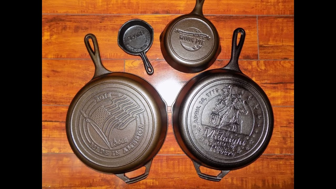 Cracker Barrel restaurants sell their own line of cast iron pans with the Cracker Barrel logo. These pans have always been made by Lodge Cast Iron. Beginning in 2012, Cracker Barrel began selling a line of cast iron skillets with an "American" themed design on the underside. In 2014 they officially named this their "American Heritage" series. Until the spring of 2024, these "American Heritage" cast iron skillets were delivered to Cracker Barrel restaurants during March and April of each year. The restaurant chain sold them during their annual "American Heritage" theme sale each spring, especially during the period between Memorial Day and the Fourth of July. The last year the "American Heritage" series was produced for Cracker Barrel was 2024; though their stores have continued selling cast iron pans as part of this series since then. The cast iron pans sold through Cracker Barrel since 2025 have still been made by Lodge Cast Iron, but none of them were produced exclusively for Cracker Barrel.